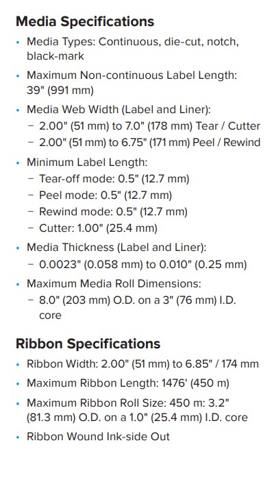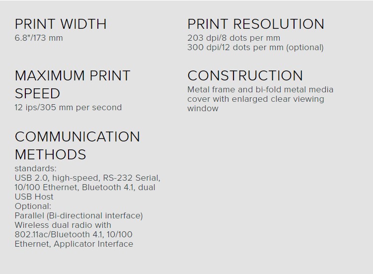Available in two print resolutions and max print width of 168mm, the Zebra ZT421 addresses a broad array of applications. They are easy to integrate and manage with Zebra’s Print DNA suite of applications, utilities and developer tools?all powered by Link-OS®.